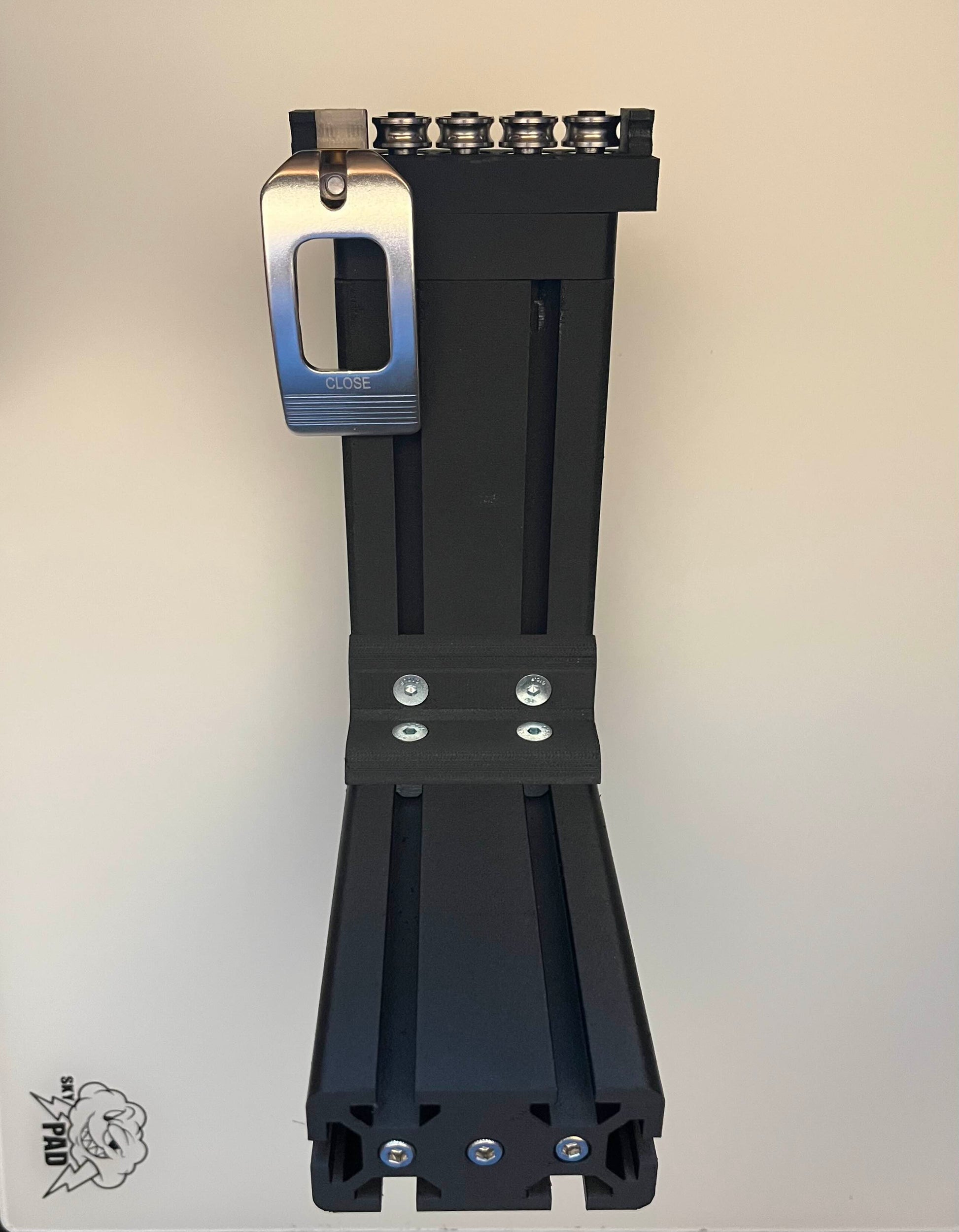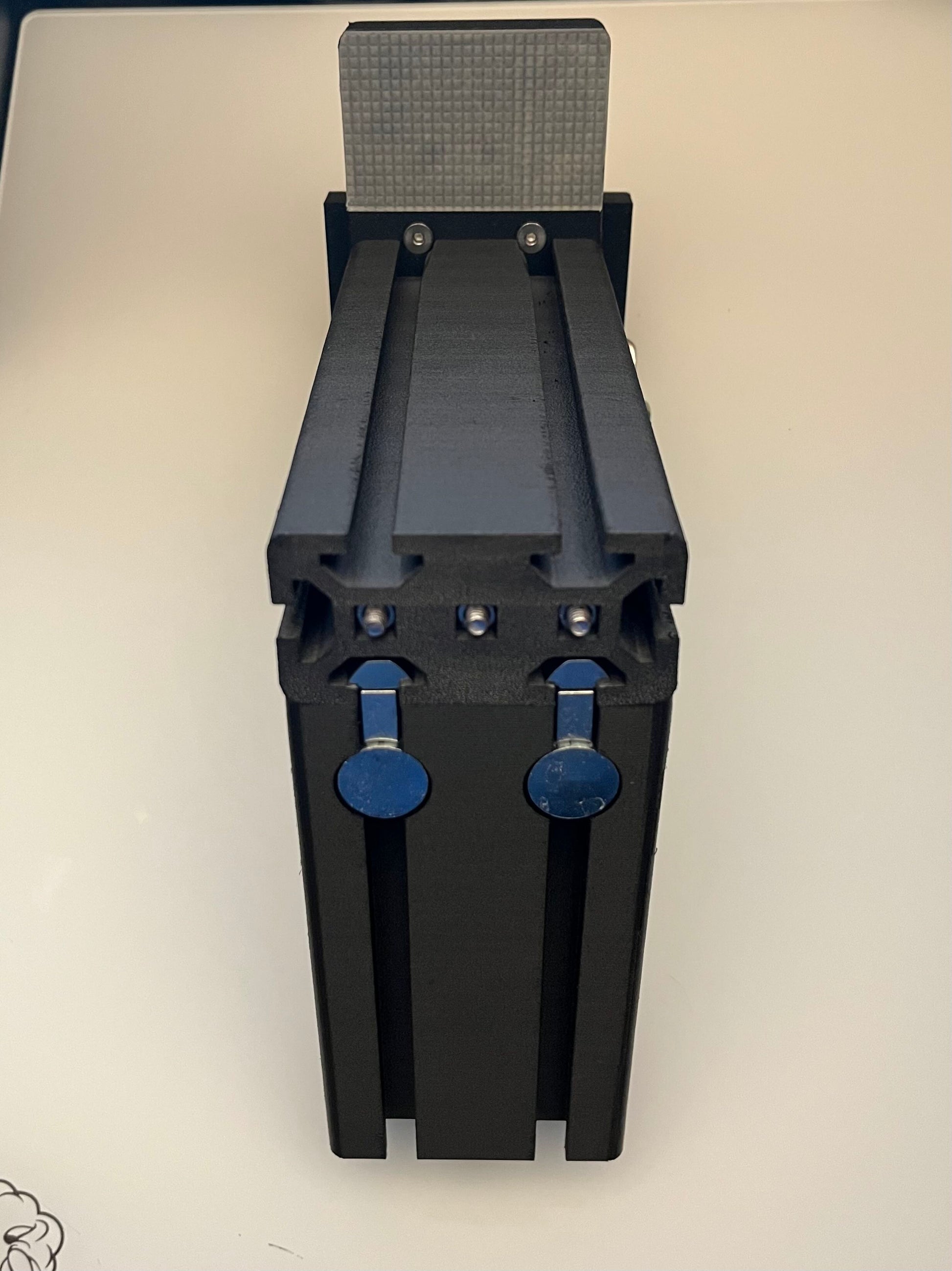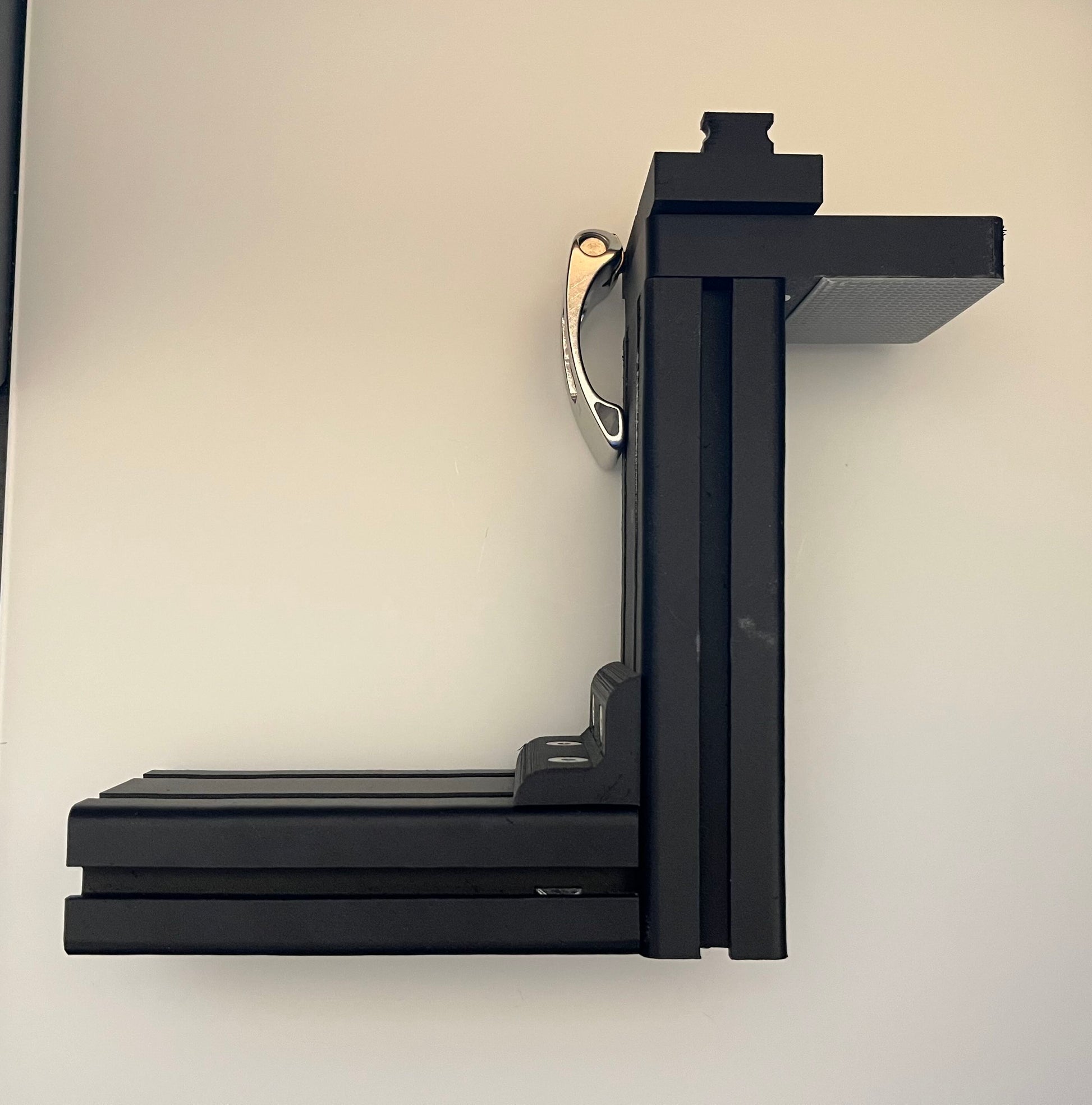 This product is 3D printed Metric 4080 Extrusion for desk mounts (compatible with desk clamp and desk rail attachments). Filament used for this part is Bambu Lab PETG-CF, which is carbon fiber reinforced PETG, and it is printed at 100% infill for maximum strength and rigidity. This kit includes 1 top plate 18mm thick (0.71"), 1 vertical 192mm (7.56") extrusion piece, 1 horizontal 210mm (8.27") extrusion piece with countersunk anchor holes for the horizontal accessory mount (Keyboard/Mouse Tray, Joystick, Throttle, etc.) and 1 double hole L-bracket for additional strength. All assembly hardware is included with this kit (M6 screws/t-nuts and M8 anchors/screws/t-nuts). Desk clamp and Rail Guide (shown in pictures) attachments for this extrusion are sold separately based on your desk mounting preference.