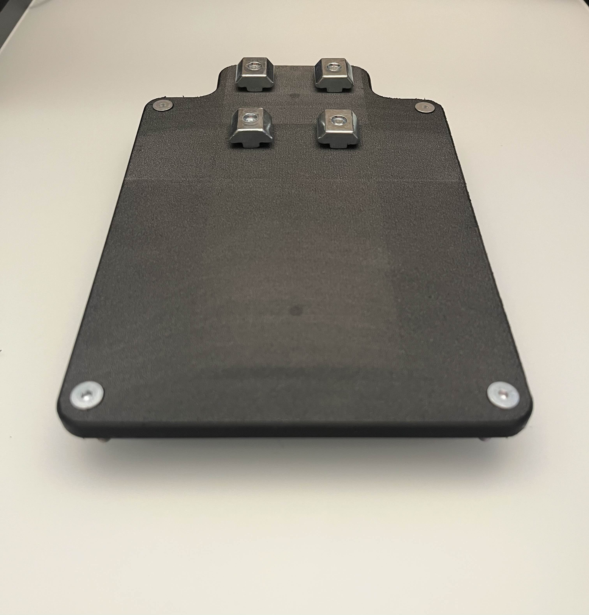 This product is a 3D Printed Mounting Plate for attaching VKB Gladiator NXT/EVO Device to Metric 4080 Extrusion. Filament used for this part is Bambu Lab PETG-CF, which is carbon fiber reinforced PETG, and it is printed at 100% infill for maximum strength and rigidity. M6 screws and hammer head T-nuts are provided for attaching this mounting plate to your extrusion. M5 screws and nuts are provided for attaching your VKB Gladiator NXT/EVO Device to the mounting plate